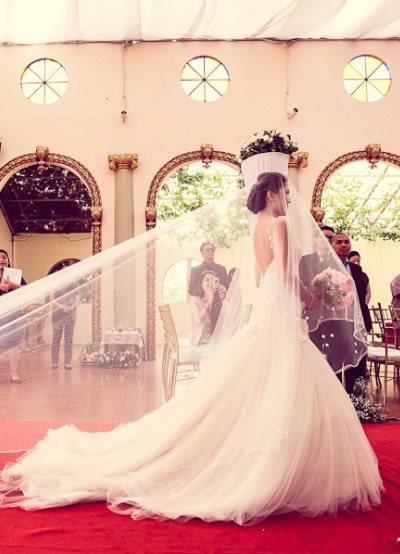 I must admit, I tear up a bit when I saw Joan, Jovy and Sarah at Charina's wedding.  I suddenly remembered how it was and how different it is now.  Their eyes lit up too when they saw me, their smiles were too familiar and their hugs the warmest.  It felt just like yesterday.  I was overwhelmed with gratitude for the Big Guy up there. And then I realized, it's still the same.  I may now have a fitting staff, I may no longer carry a sewing box and clients now come to me for fittings, but the desire to make beautiful gowns is still there.  And the happiness I see in their faces and the absolute joy it gives me still remain. :-)
